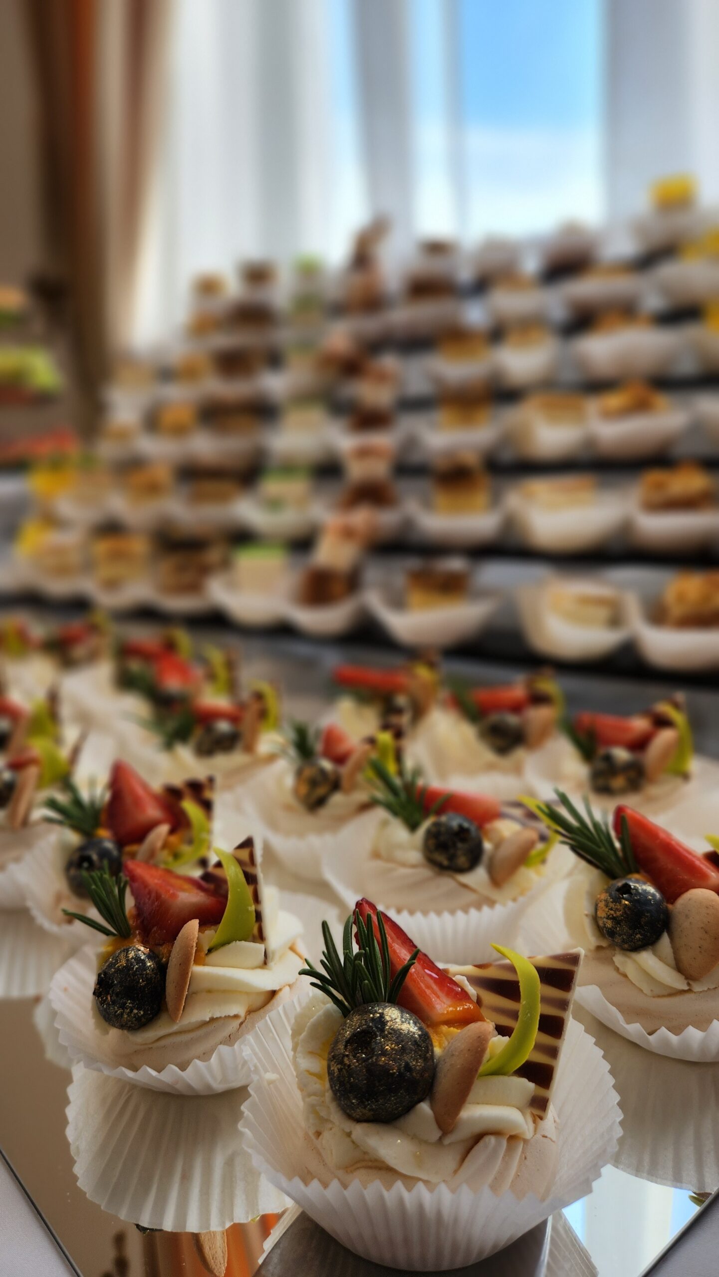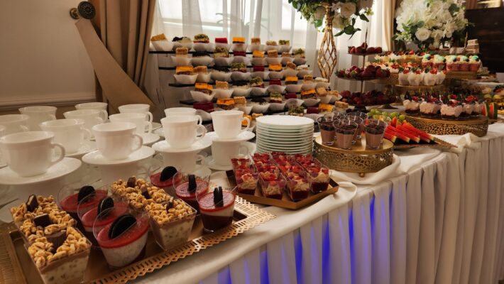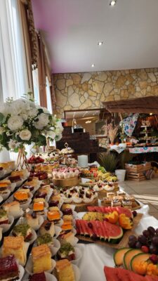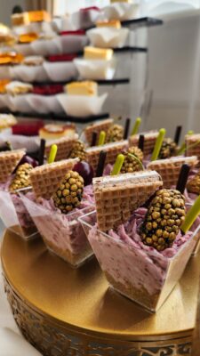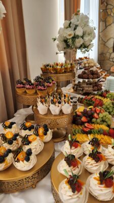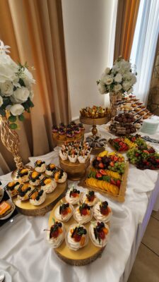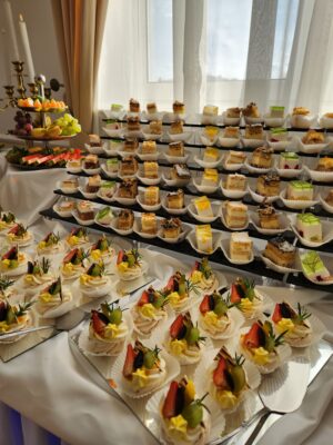 W cenie każdego przyjęcia przygotowujemy dla naszych Gości elegancki stół kawowy, który zachęca do chwili odpoczynku i słodkiej przyjemności. Oprócz aromatycznej kawy i herbaty serwujemy różnorodne ciasta domowe, które cieszą się ogromnym uznaniem naszych Gości. Dbając o różnorodność, proponujemy również mini deserki i słodkie monoporcje – lekkie musy, kremowe serniczki, tiramisu czy owocowe kompozycje w estetycznej formie. Dzięki temu każdy znajdzie coś dla siebie, a stół kawowy staje się nie tylko pysznym dodatkiem do wesela, lecz także efektowną atrakcją wizualną.