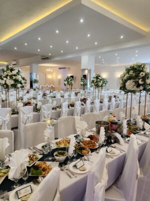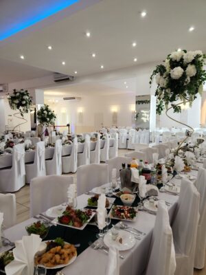 W naszej galerii możesz zobaczyć, jak wyjątkowy klimat tworzy Sala Weselna Wiktoria w Łukowie podczas przyjęć. Eleganckie wnętrza zaaranżowane z dbałością o każdy szczegół, nastrojowe oświetlenie i dekoracje dopasowane do charakteru uroczystości sprawiają, że każda chwila nabiera niepowtarzalnego uroku. Zdjęcia ukazują zarówno przestronność sali, jak i przytulne detale, które budują ciepłą, rodzinną atmosferę. To miejsce, w którym piękne wnętrza, smak wykwintnych potraw i profesjonalna obsługa tworzą scenerię dla najpiękniejszych wspomnień.
